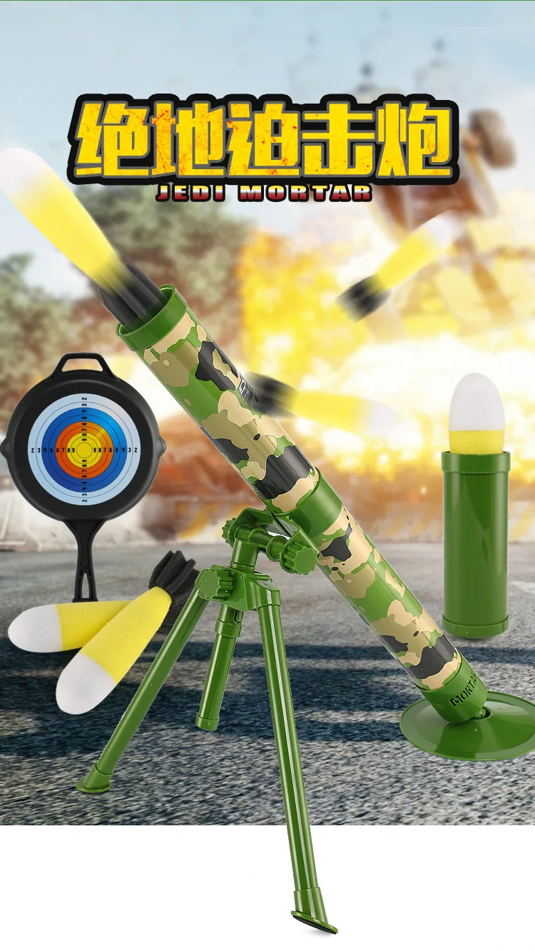 Product Features: Launchable Children Toys Mortar Pursuit Bomb Large Hand-held Eating Chicken Cannon Combat Military Model Gun Outdoor Fun Sports Boy Gifts