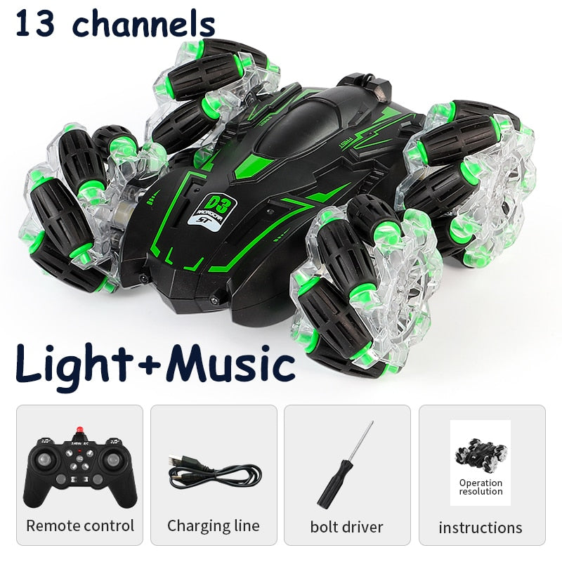 - Exciting Features: Choose between two versions: the stunt car or the stunt car with light and music. Both versions offer a range of functions, including forward and backward movement, left and right drift, lateral drift, stunt rotation, LED dazzling lights, and a one-button demonstration function.